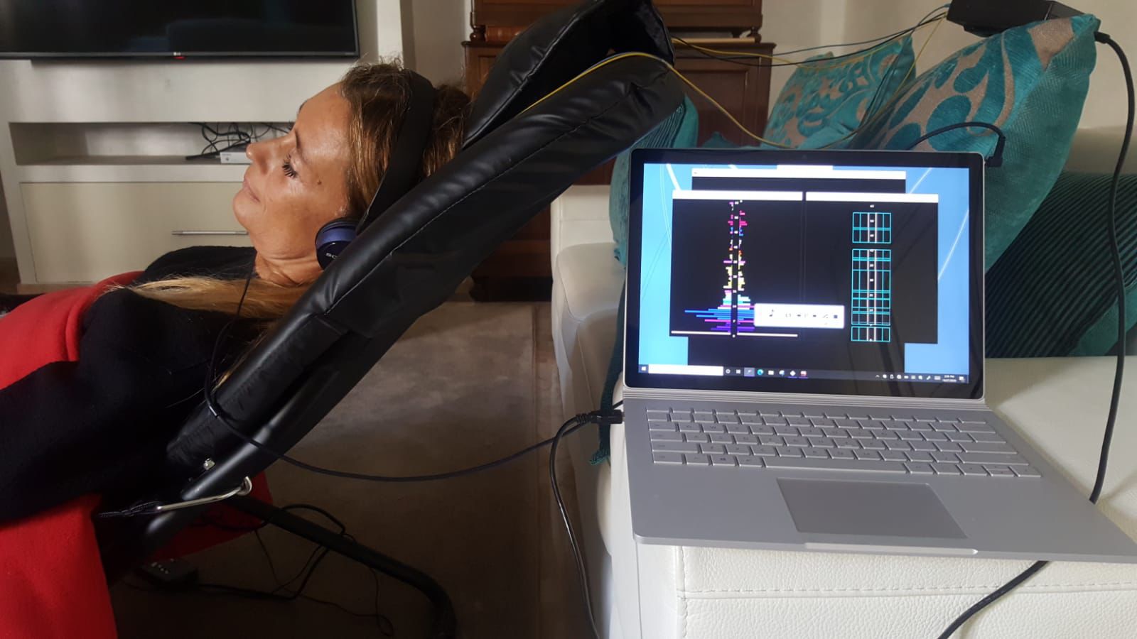 Durante la sessione, il paziente è comodamente seduto mentre degli elettrodi posizionati sulla testa rilevano l’attività cerebrale. Il sistema NeurOptimal® elabora i dati e fornisce feedback sonori attraverso una musica.